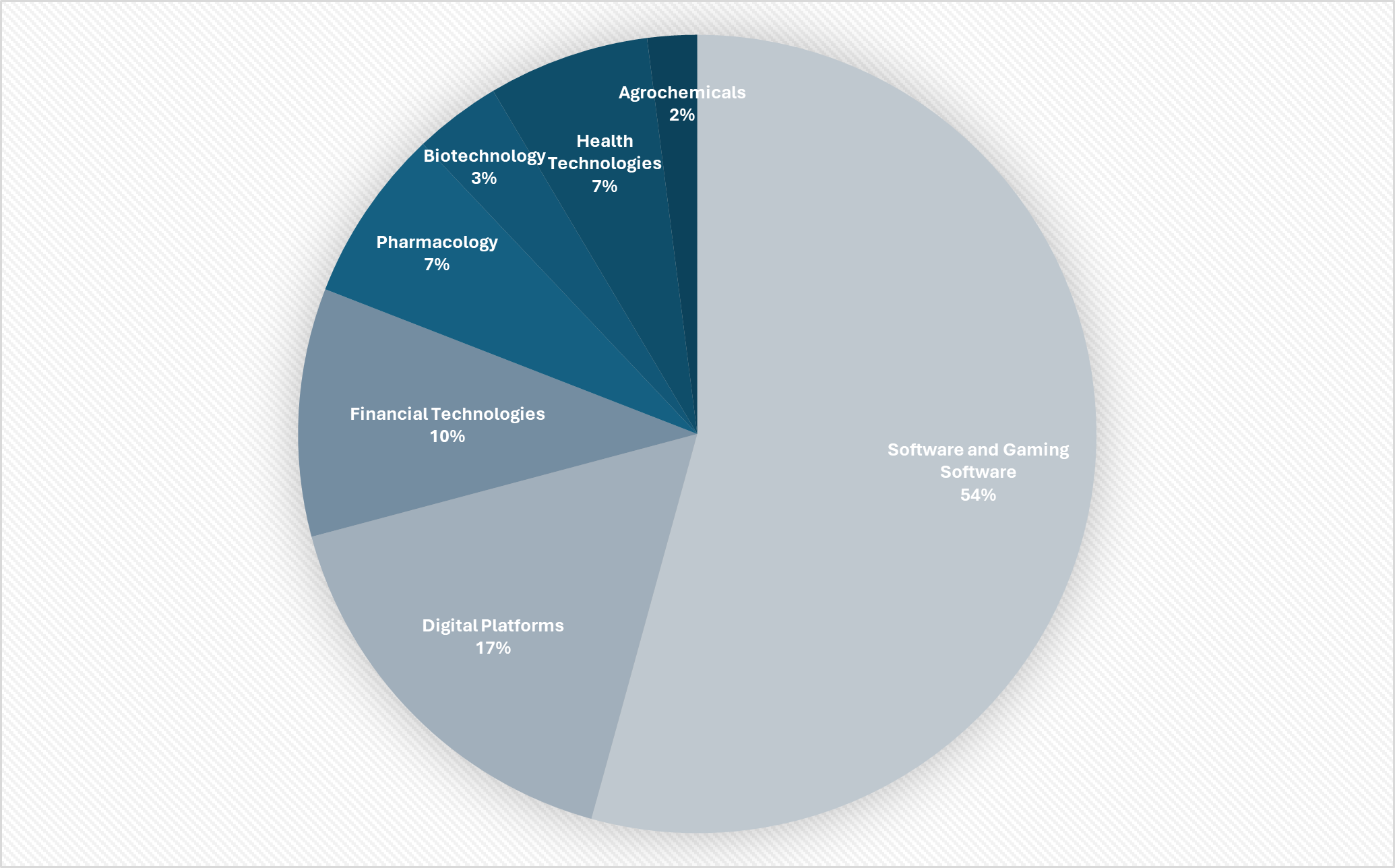 The chart below presents the distribution of TCA decisions involving technology undertakings between 2022 and 2025, broken down by the sectors in which the relevant undertakings operate.